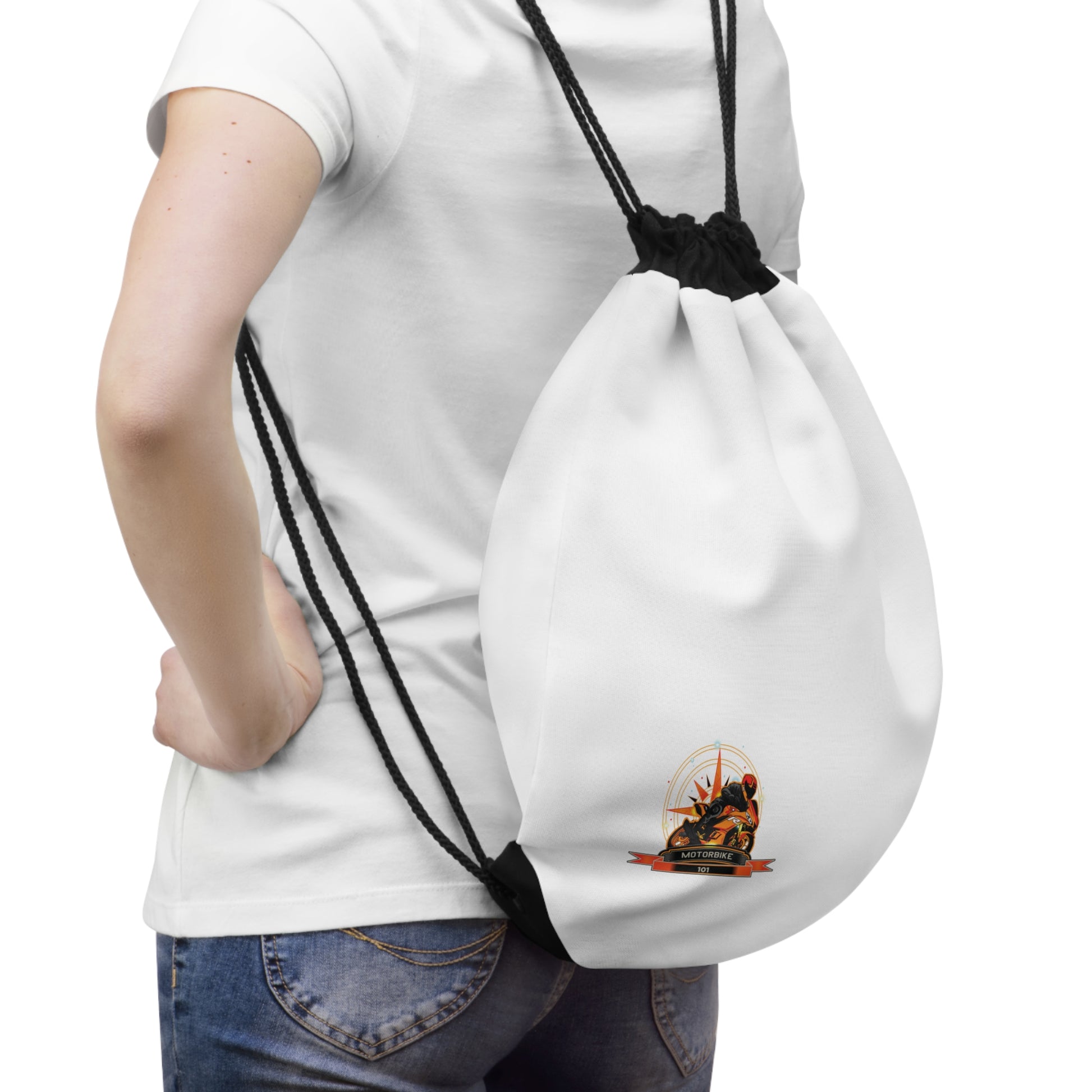 Premium White Drawstring Bag - Lightweight Bag for Travel by Motorbike101