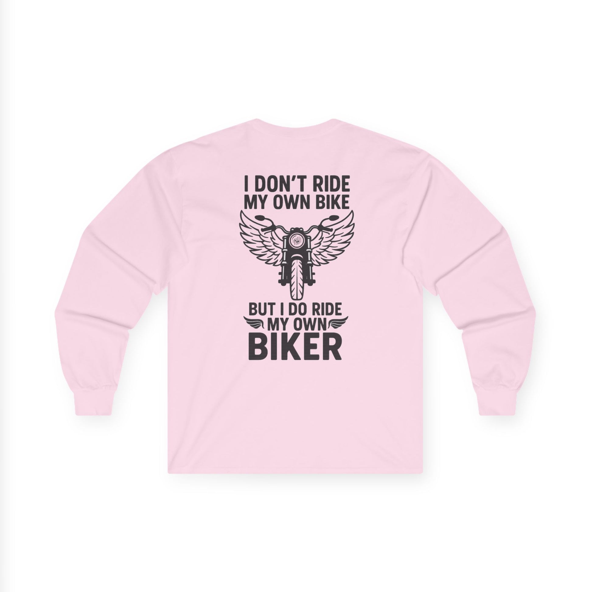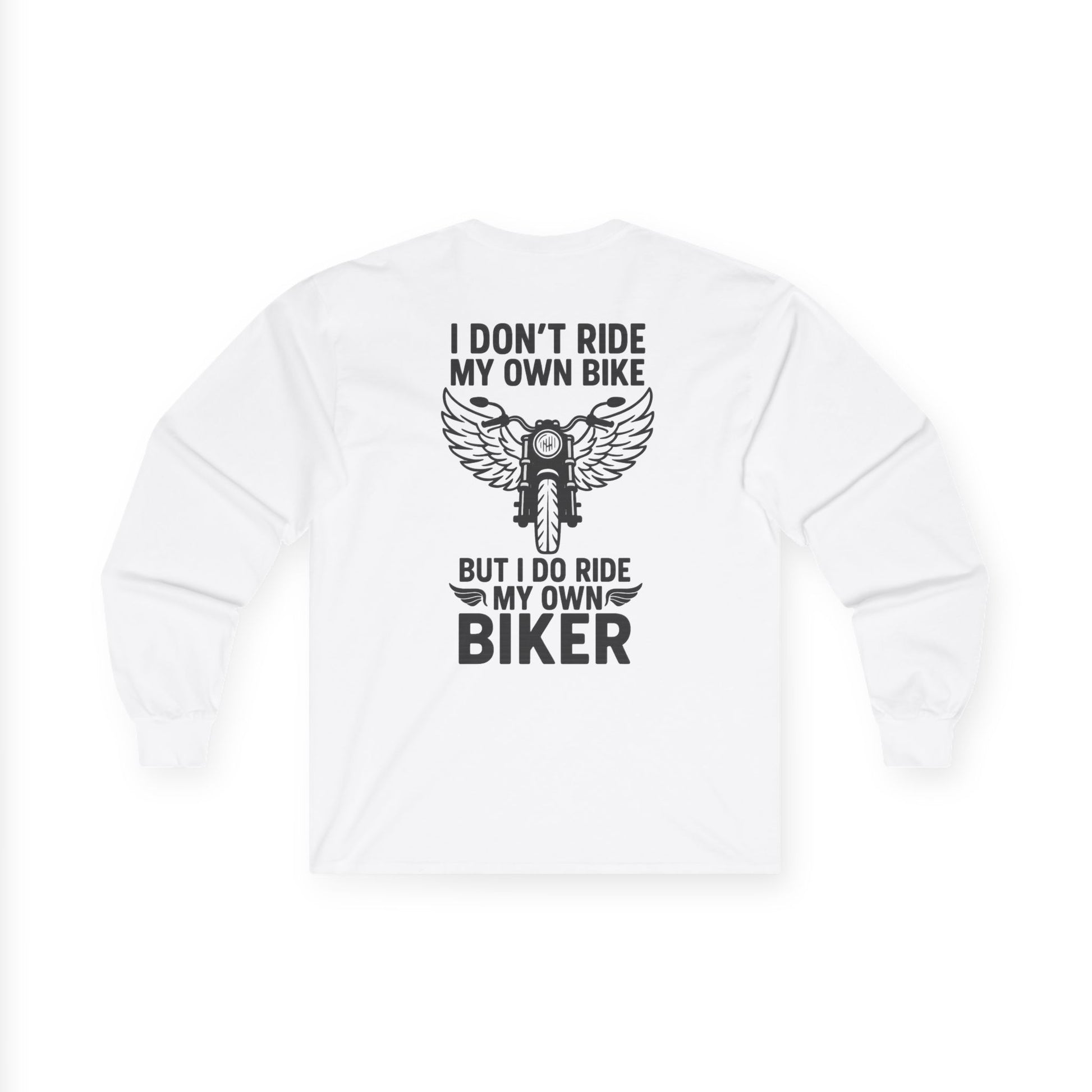 Perfect for the motorcycle enthusiast's partner who knows the real ride! This hilarious sweatshirt features bold black typography with a winged motorcycle graphic that perfectly captures the playful spirit of biker culture.
